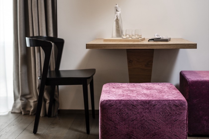 Die majestätischen Südtiroler Dolomiten verdanken ihren Namen diesem faszinierenden Gestein. Dem Dolomit wird nachgesagt, dass er eine positive Lebenseinstellung fördert. Und wer will das nicht? Das geräumige Doppelzimmer mit Blick Richtung Talschluss und Berge liegt im Hauptgebäude und beschert kleineren Familien bzw. Familien mit Kleinkindern genau diese Freude und Positivität.